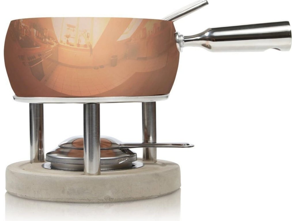 Luxusní měděný fondue set BOSKA zaujme na první pohled - kombinuje nerez, měď a beton v dokonalé rovnováze. Ideální pro sýrové nebo čokoládové fondue, zimní večery u ohně i gurmánské posezení s přáteli.