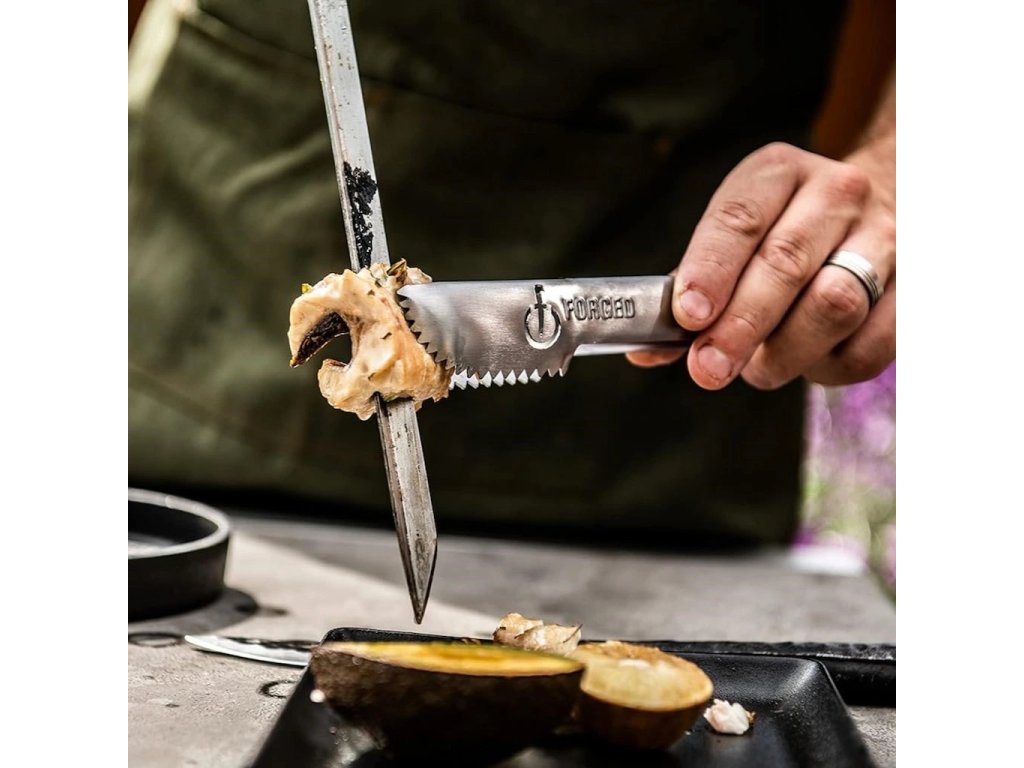 Matně lesklý povrch s gravírovaným logem FORGED působí profesionálně a elegantně – na zahradě i v moderní kuchyni.