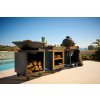 DOPRODEJ POSLEDNÍCH KUSŮ, ZBOŽÍ SE JIŽ NEBUDE VYRÁBĚT! Pojízdný přípravný stůl je perfektním doplňkem k vašemu venkovnímu ohništi. Snadno jej umístíte tam, kam budete zrovna potřebovat. Krájecí deska je z teakového dřeva a tmavě šedé keramiky.