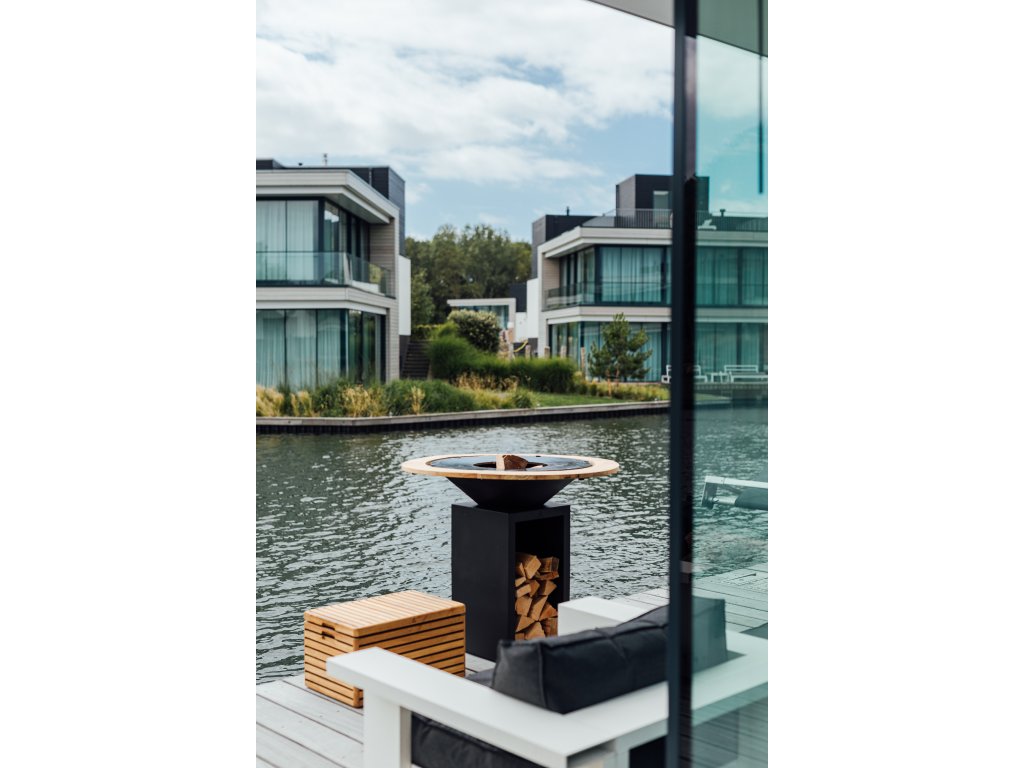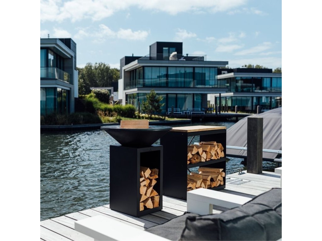 OFYR Classic Storage Black 85 – prémiový gril a designové ohniště s černou povrchovou úpravou a integrovaným úložným prostorem na dřevo. Ideální pro celoroční venkovní grilování na zahradě, terase i u vody.