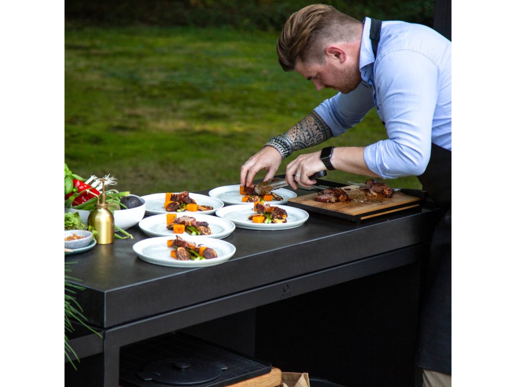 OFYR Island Black 100 Teak Wood představuje promyšlený koncept „vše v jednom“, který z grilování dělá přirozený společenský rituál. Robustní konstrukce z černě lakované oceli působí moderně a zároveň nadčasově, zatímco teaková pracovní deska přidává teplo přírodního materiálu a maximální komfort při přípravě surovin.