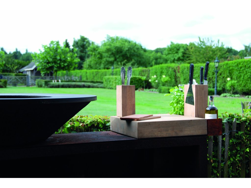 OFYR Island Black 100 Teak Wood je plnohodnotná venkovní kuchyně v elegantním černém provedení, která spojuje ikonické ohniště OFYR, pracovní plochu z masivního teaku a praktický úložný prostor na dřevo. Ideální řešení pro všechny, kdo chtějí vařit venku stylově, pohodlně a bez kompromisů.