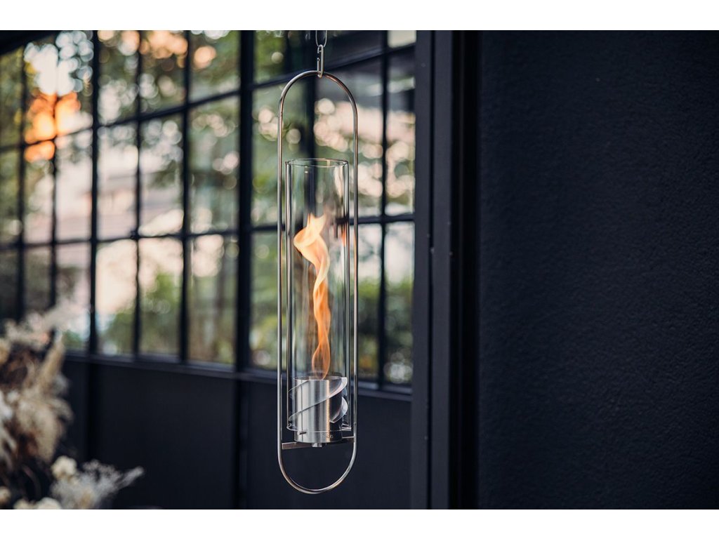 Závěsný systém SPIN 1200 umožňuje zavěsit stolní biokrb do prostoru místo běžného umístění na stole. Stabilní ocelová konstrukce se výborně hodí tam, kde chcete vytvořit estetický závěsný efekt živého plamene — například nad jídelním stolem, pracovním koutem, lounge zónou nebo eventovým barem.
