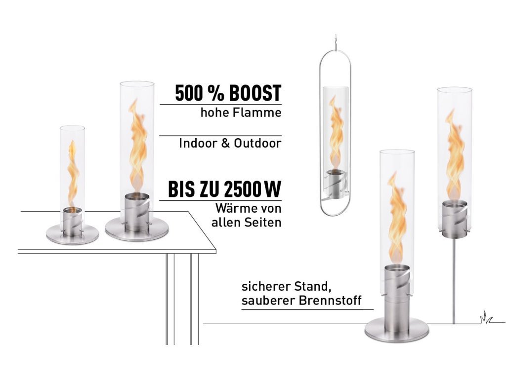 ✔ výrazný závěsný efekt s živým spirálovým plamenem