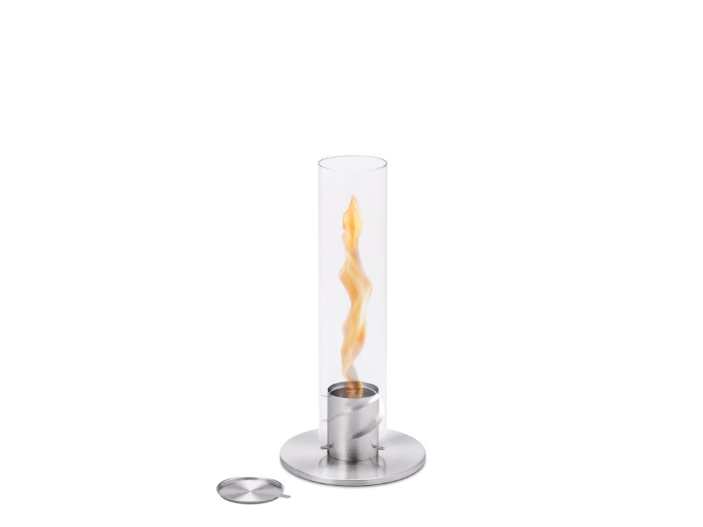 SPIN 1200 Silver od Höfats je luxusní stolní biokrb, který přináší živý oheň v podobě spirálového plamene uvnitř vysokého skleněného válce z borosilikátového skla. Tento skvělý optický efekt vzniká díky sofistikovanému proudění vzduchu – plamen se vytáčí vzhůru jako světelná plastika a okamžitě přitáhne pozornost hostů i přes den.