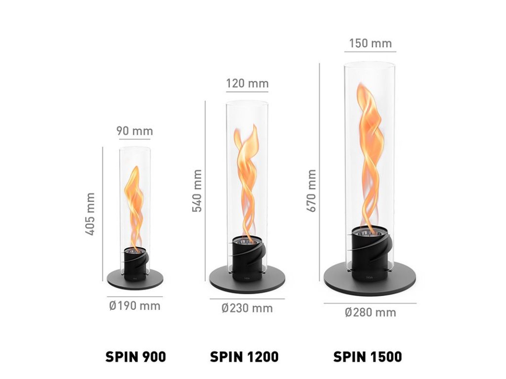 ✨ Díky své velikosti působí SPIN 1500 Black mnohem výrazněji než běžné lampy nebo svíčky a dodává prostoru efekt živé ohnivé instalace.