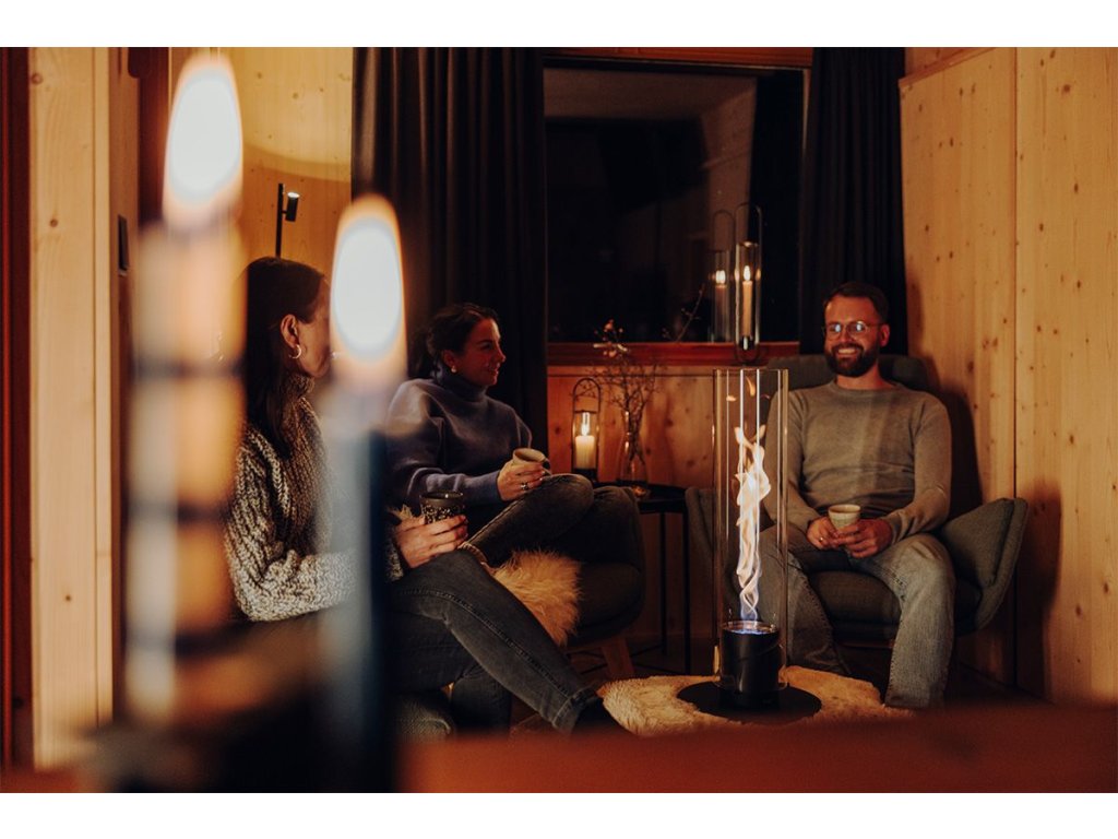 SPIN 1500 Black jsme používali během večerních degustací, privátních eventů, fire show i atmosférického stolování. Ve větších prostorech a lounge působí mnohem dominantněji než SPIN 900 – plamen je vyšší, silnější a okamžitě poutá pozornost hostů. Atmosféra je luxusní, přirozeně hřejivá a velmi útulná.