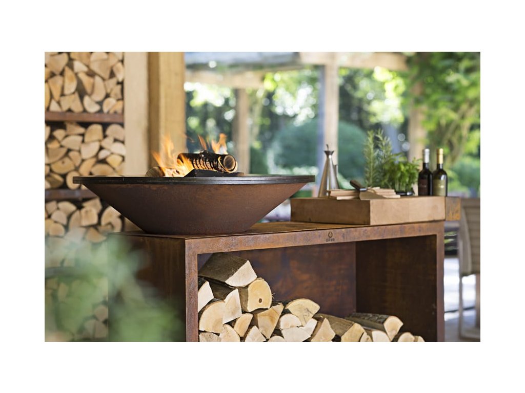 OFYR Island Corten 85 Teak Wood si můžete prohlédnout a vyzkoušet v našem showroomu v Praze – Holešovicích (Vnitroblock). Rádi vám pomůžeme s výběrem příslušenství, dřeva i správným používáním.