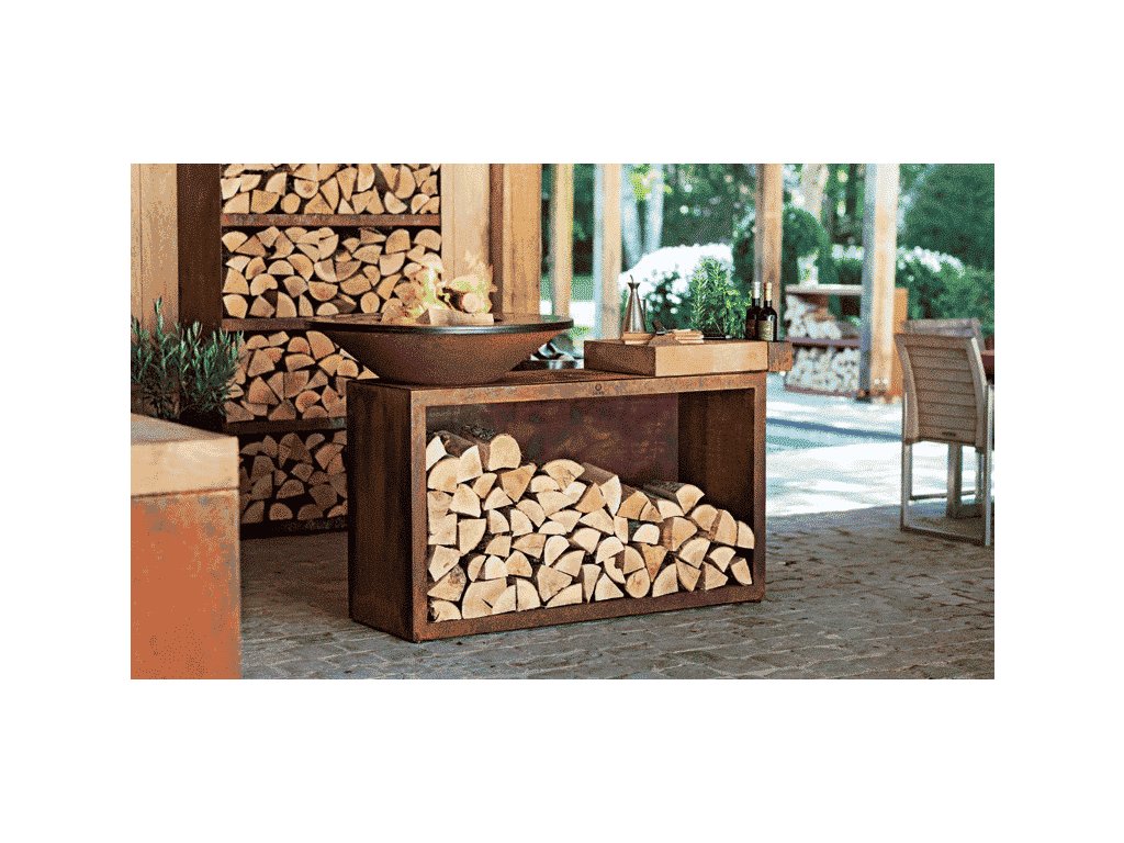 OFYR Island Corten 85 Teak Wood je prémiová venkovní kuchyně typu vše v jednom, která kombinuje ikonické ohniště OFYR, praktický úložný prostor na dřevo a pracovní desku z masivního teakového dřeva. Stylové a funkční řešení pro každého, kdo chce vařit venku bez kompromisů a mít vše po ruce.
